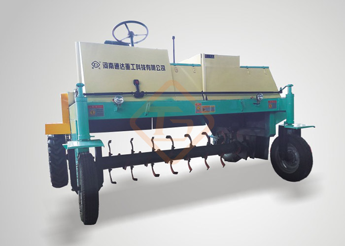 行走式翻拋機(jī)(自行式翻拋機(jī))是生產(chǎn)生物有機(jī)肥專用成套設(shè)備中的主機(jī),該機(jī)采取四輪行走設(shè)計(jì),可前進(jìn)、倒退、轉(zhuǎn)彎,由一人操控駕駛。行駛中整車騎跨在予先堆置的長(zhǎng)條形肥基上,由機(jī)架下掛裝的旋轉(zhuǎn)刀軸對(duì)肥基原料實(shí)施翻拌、蓬松、移堆,車過之后篡成新的條形垛堆。即可在開闊場(chǎng)地,也可在車間大棚中實(shí)施作業(yè)。