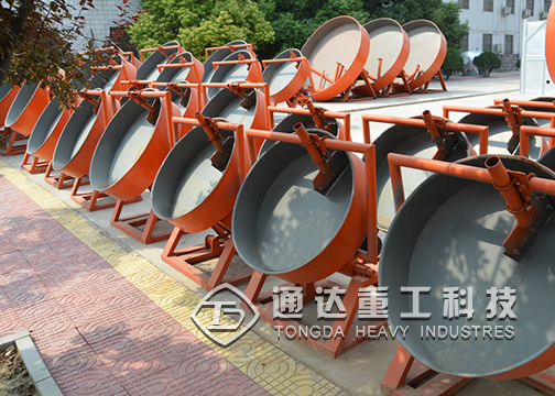 生料粉通過預(yù)加水?dāng)嚢杈鶆,輸入盤內(nèi),隨著盤的轉(zhuǎn)動,料在盤體內(nèi)通過滾動逐步形成球狀,達(dá)到預(yù)定的直徑后排出盤外,再輸送到下一道工序。
